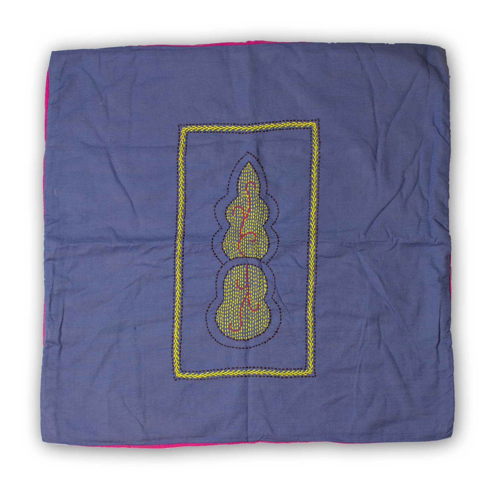 The cushion cover comes presented in a re-usable cotton drawstring bag, hand-crafted from a vintage sari offcut, with a packaging insert explaining Khushi Kantha’s social enterprise mission and story – so it works perfectly as a gift!